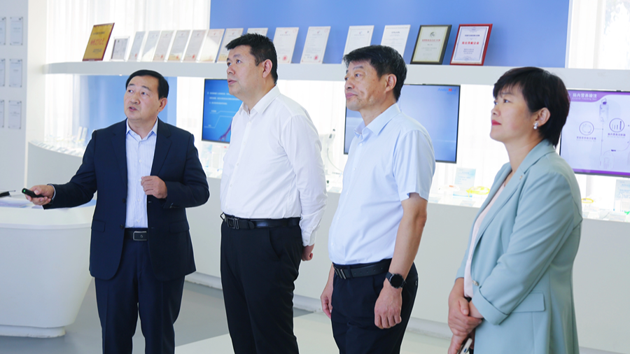 山東省藥監(jiān)局醫(yī)療器械處處長(zhǎng)吳世福,第三分局局長(zhǎng)任曉楠陪同調(diào)研。